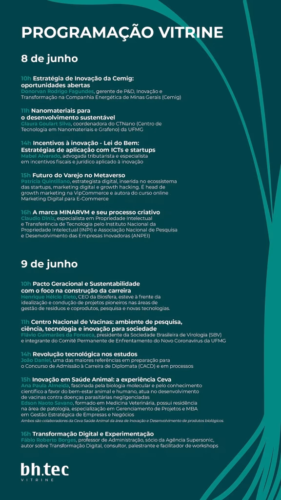 Na quarta (8) e quinta (9), você vai conhecer de perto essas e outras tecnologias desenvolvidas pela Biosfera na Vitrine BH-TEC.